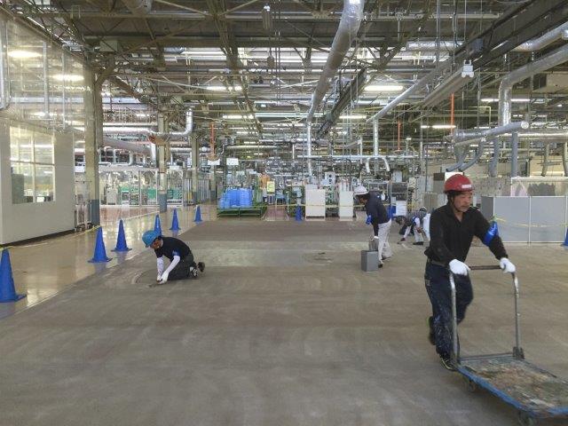 食品工場や店舗厨房の床、工場の搬送車走路や出入荷プラットホーム、建物の駐車場床など様々な場所に対応いたします。
