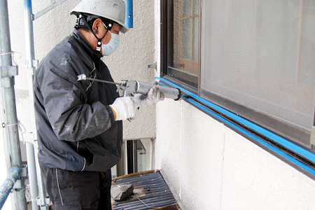 これら目地や窓硝子やサッシの周囲にシーリング材(ゴム状のもの)を充填し、目地部から水の侵入・空気の通過を防止するために行うのがシーリング工事です。